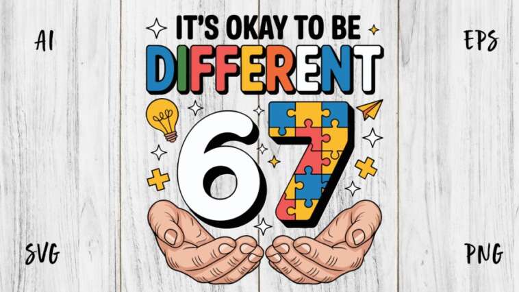 Its OK To Be Different 67 PNG | Six Seven Kids Meme Shirt | Autism Awareness Puzzle Design | Boys Funny Sublimation Digital Download